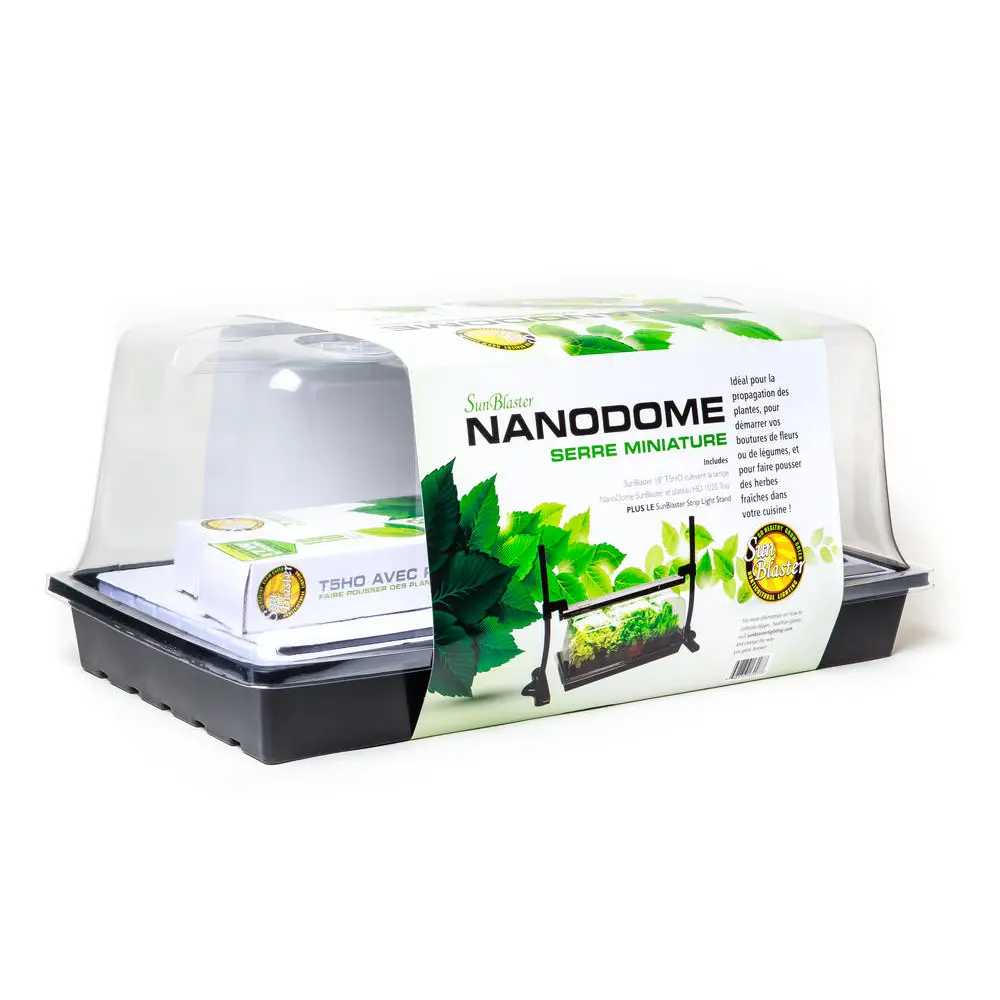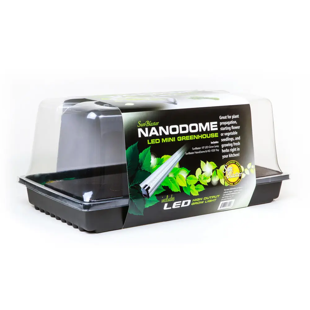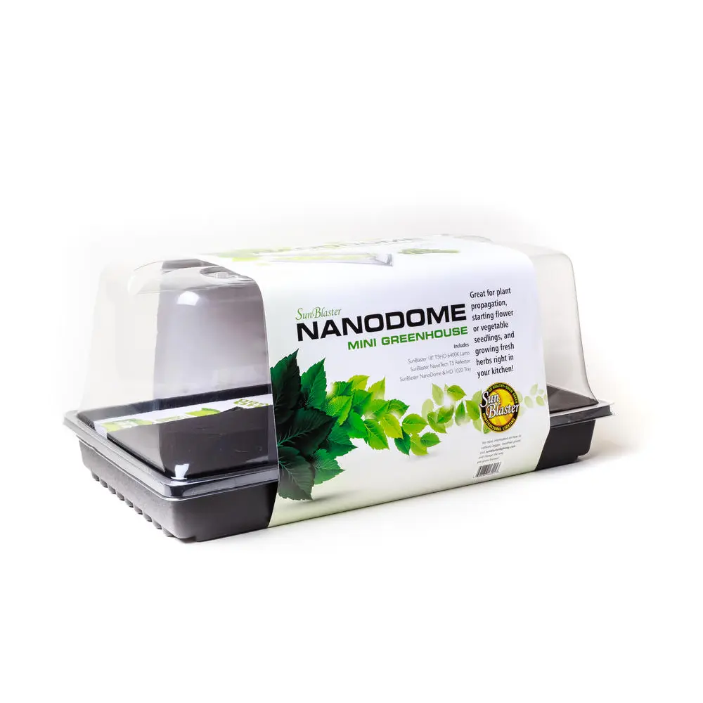 The Sunblaster Mini Greenhouse makes propagation easy! Start flower or vegetable seedlings, propagate fresh cuttings, or grow fresh herbs right in your kitchen. Includes a full spectrum high output 6400K fluorescent growing lamp designed to perfectly fit our Sunblaster NanoDome. Lay your lighting across a single dome or multiple domes.