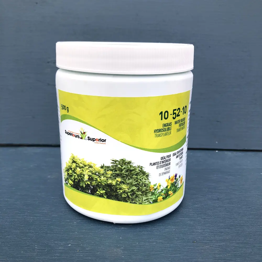 Superior Products 10-52-10 plant starter fertilizer is water soluble, ideal for both indoor and outdoor plants. Available in 500g or 1.5kg.