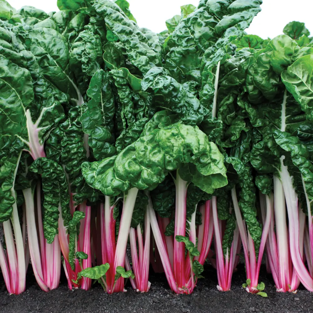 White petioles with pink stripes from bottom to top create a visual pop that will catch any eye. It has glossy, dark green savoy leaves that make a statement on the plate. Bolt tolerant and perfect for fresh markets and home gardens. Can be planted as an ornamental too!
