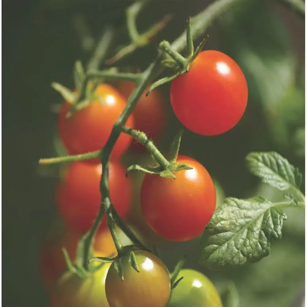 The medium-large spreading plants of this cherry variety offer bright scarlet cocktail tomatoes that are 3cm (1 1/2") in size, round, firm and very tasty. The fruits are helds in large clusters, making them very easy to pick.