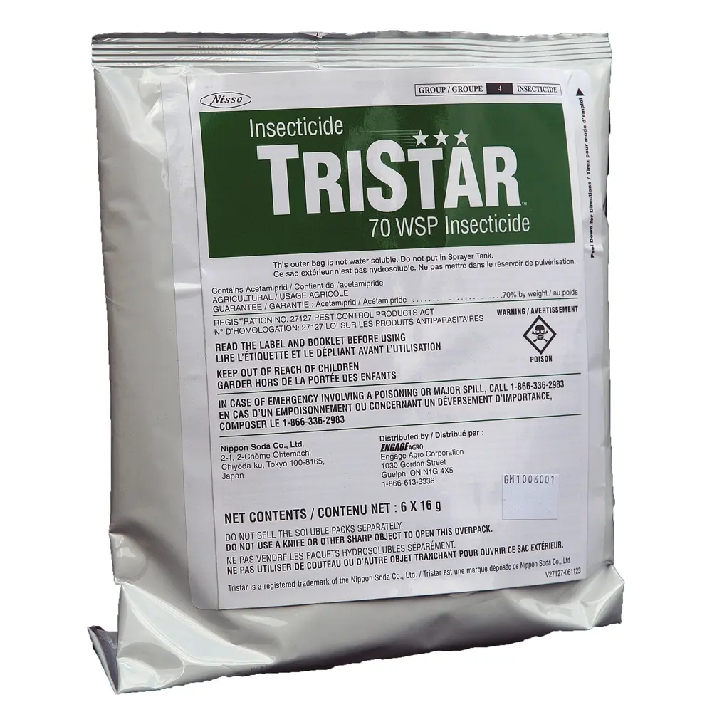 An insecticide used on ornamental and flowering plants grown outdoors, in greenhouses, shadehouses and lath houses. Tristar is registered for use on bedding plants, flowers grown for cuttings, foliage plants, potted flowering plants, ornamental trees and non bearing fruit & nut trees. Tristar will control aphids, European pine sawfly, tentiform leaf miner, leafhopper and whiteflies. It has contact activity for a quick knockdown as well as systemic and translaminar activity for long residual control.