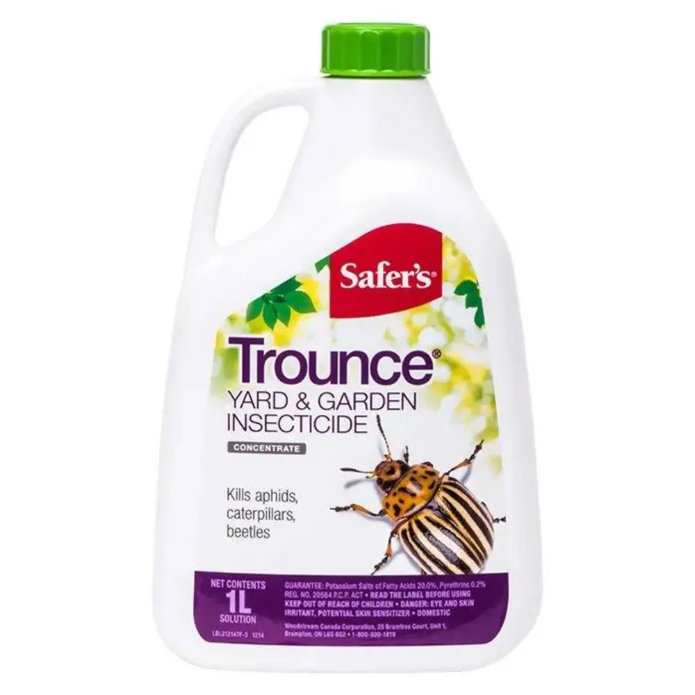 Safer's Trounce Yard & Garden Insecticide combines pyrethrins and potassium salts of fatty acids to kill insects on contact. The pyrethrins attack the insect's nervous system and potassium salts weaken the insect's protective outer shell. Controls a variety of insects including aphids, caterpillars, beetles earwigs, and whitefly. Trounce can be used on fruit trees, landscape trees, ornamentals, flowers, shrubs, and vegetables.