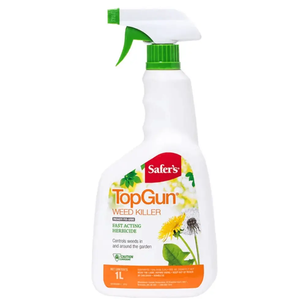Safer's TopGun Weed Killer controls weeds in and around the garden. This fast acting herbicide can be used around building, fences, gravel, trees, sidewalks and driveways. It can also be used prior to planting grass, shrubs, flowers, and vegetables and will leave no soil residue. Controls a broad spectrum of weeds including redroot pigweed, corn spurry, chickweed, and more. Active ingredient: 3% fatty acids.